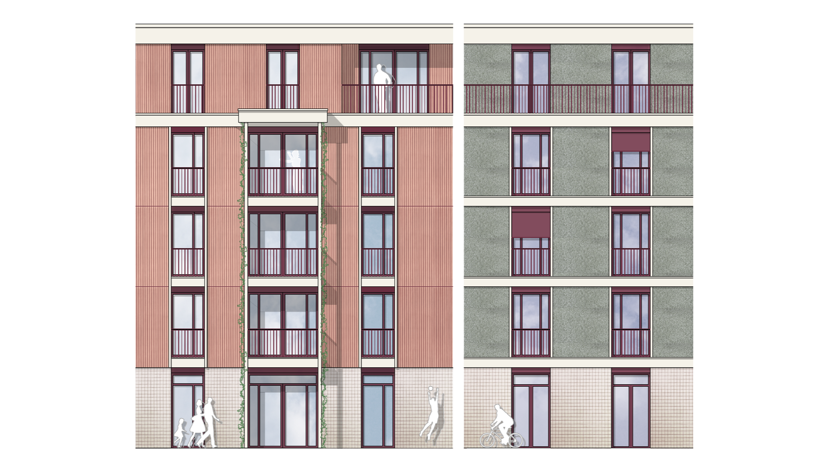 Der bisherige Städtebau zeichnet sich durch klare Reihenbauten mit einheitlichen Außenräumen aus, die eine klare Vorder- und Rückseite definieren. Unser Ansatz greift dieses Prinzip auf, löst sich aber von der starren Struktur und verwandelt die Reihenhäuser in teils freistehende Einzelgebäude. So entsteht ein vielschichtiger, lebendiger Stadtraum mit gedrehten Baukörpern entlang der Carl-Beck-Straße, die einen lebendigen Quartiersplatz formen – ein neuer, identitätsstiftender Mittelpunkt.