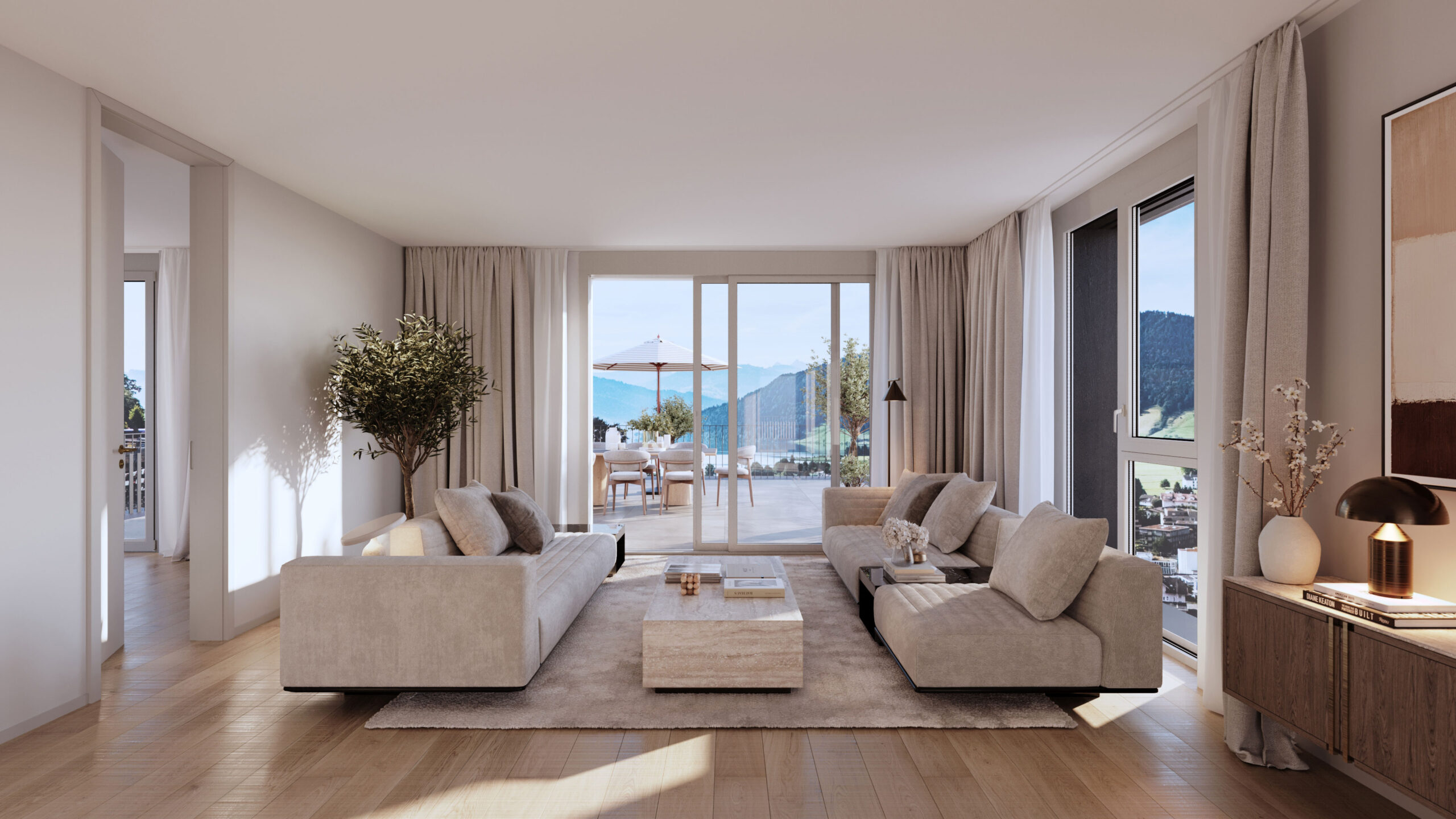 Alle Wohnungen orientieren sich bewusst zur Aussicht. So wird die beeindruckende Landschaft Unterägeris direkt in den Wohnraum geholt – spürbar, erlebbar, zu Ihrem persönlichen Nest.